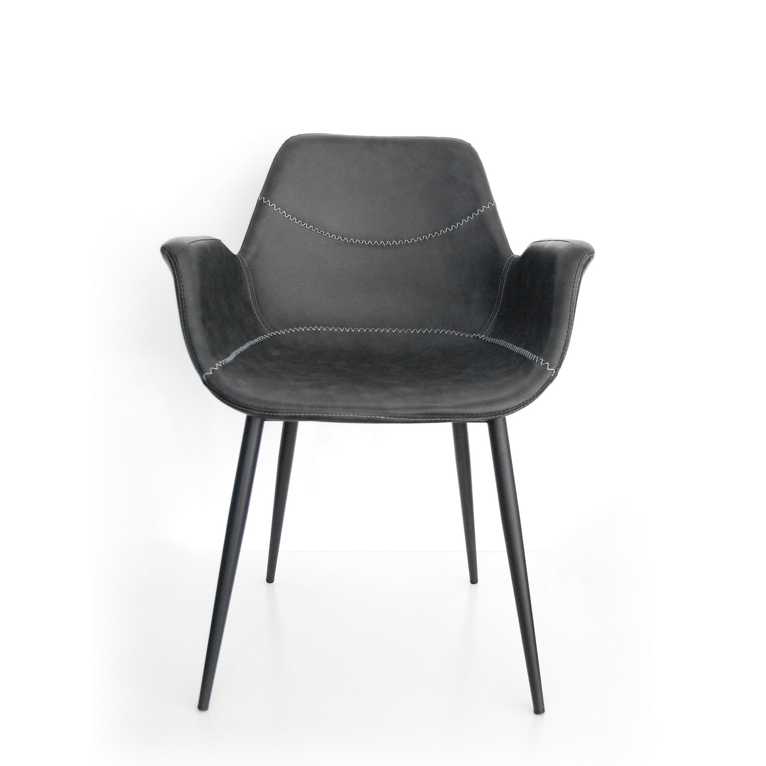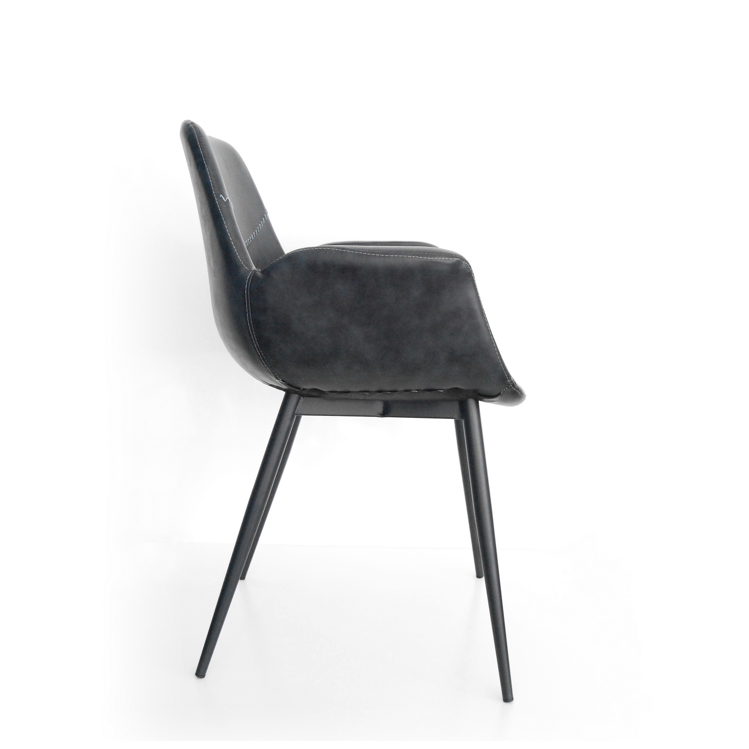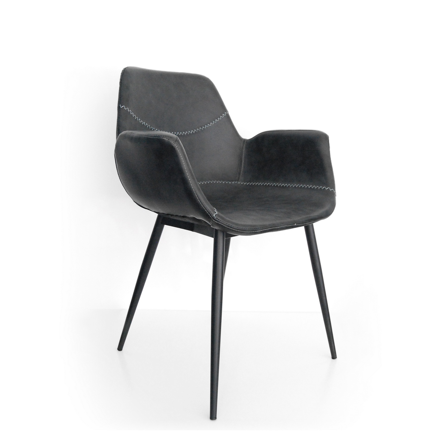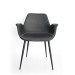 Podkonstrukcija sedećeg dela je od jake plastike, tapacirana u eko koži popularne antracit boje (tamno siva) sa zanimljivim štepanim detaljima. Sloj sundjera ispod završne eko kože doprinosi udobnosti i mekšem sedenju. Metalne nogice su takodje vrlo stabilne i jake, sa završnim mat premazom tamno sive – antracit boje. Sedeći deo je profilisan tako da se vrlo udobno sedi u njoj zahvaljujući optimalnoj visini naslona kao i rukonaslonima. Ovaj model pronalazi svoju primenu kako u stambenim, tako i u ugostiteljskim i poslovnim prostorima.