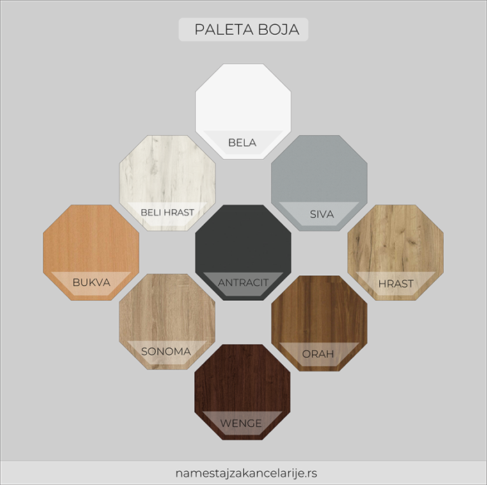 Siva, Bela, Antracit, Beli Hrast, Bukva, Hrast, Sonoma, Orah, Wenge |